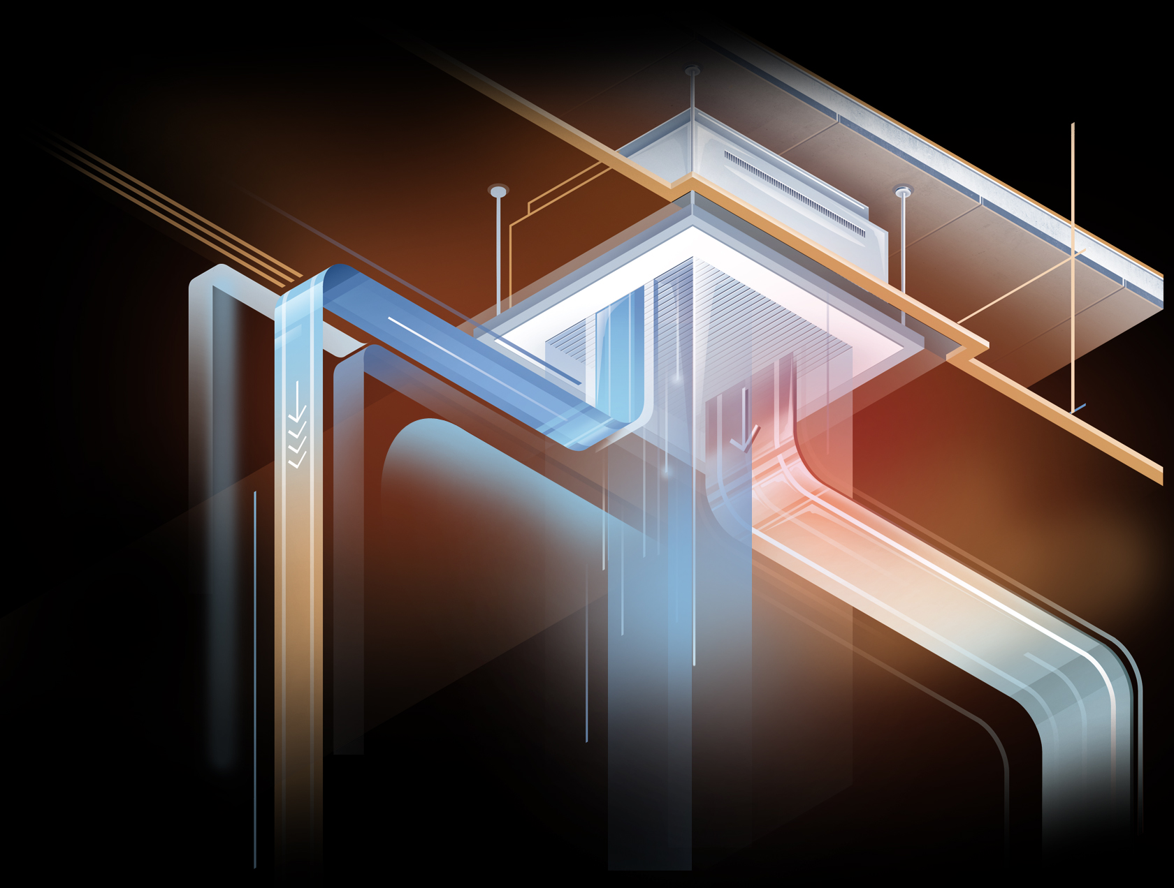 Данные приборы обеспечивают скрытую подачу теплого, холодного и приточного воздуха в жилые и коммерческие помещения от источника.